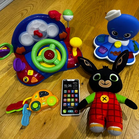 To stk gåvogn selges etter tvillinger, en i lyseblå og en i terrakotta. Noen bruksmerker. Selges helst samlet.