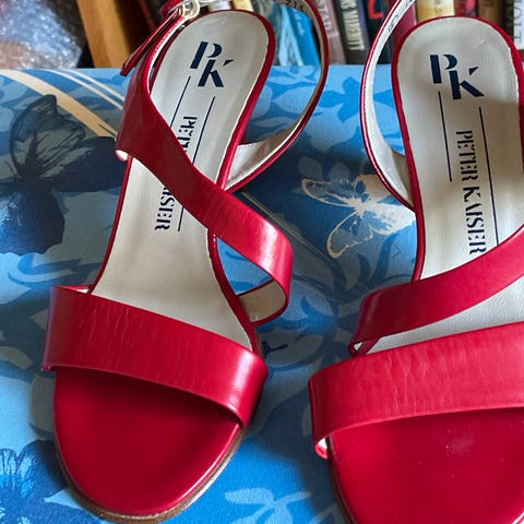 Rålekre Peder Kaiser pensko til alle anledninger i størrelse 38.5, svart farge med åpning til tå og transparente områder. Skoene har en unik og fin hæl og er laget for kvinner. Feil merke i