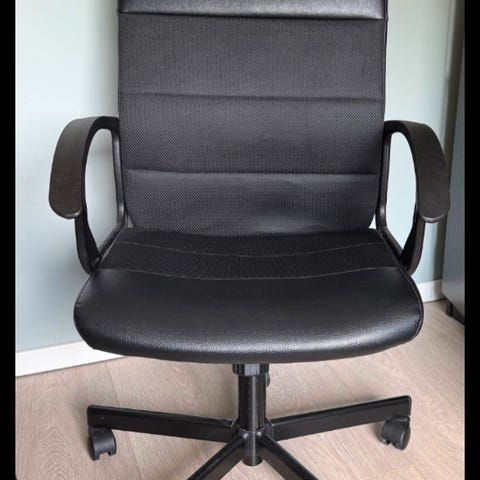IKEA Verksam (utgått modell) kontorstol i svart skinn selges. Minimalistisk og stilig design, behagelig og kan enkelt justeres. Stolen er pent brukt, all mekanikk funker som det skal, skinnet ser bra ut, bare to små flekker på bakside (se bilde).