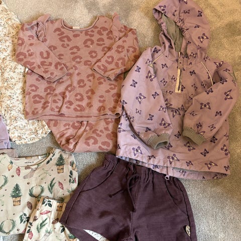 Har masse klær liggende som er blitt for smått for prinsessa mi. Det er klær fra str 86 til 104. Det er masse mer enn det som er på bilde! Det meste er ikke synlig brukt. Alt selges samlet!