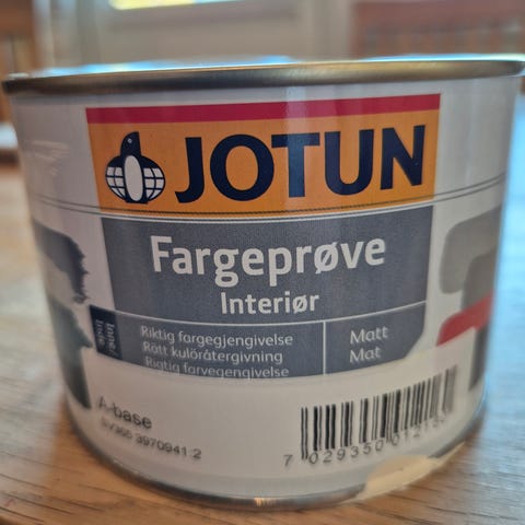 Jotun Fargeprøve Interiør maling i 0,1 liters boks. Egnet for innendørs bruk, matt finish. Produktet brukes til å teste farger før større malingsprosjekter..
