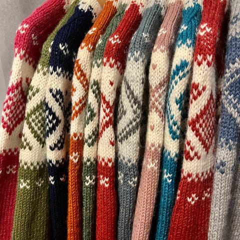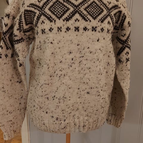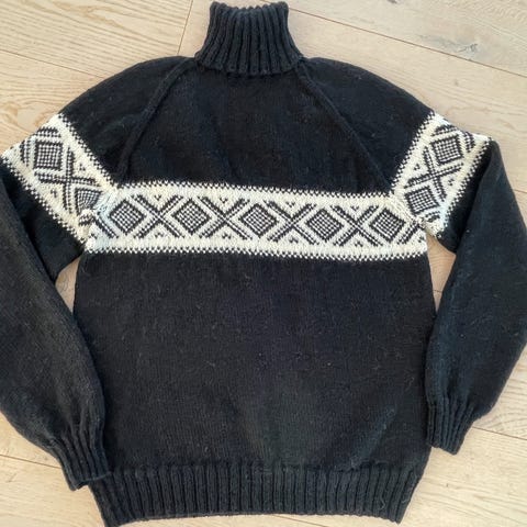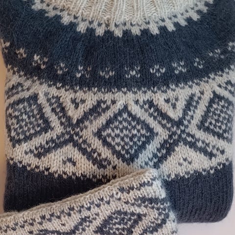 Hjemmestrikket genser mørkeblå og hvit