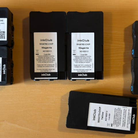 Har 3 patroner Svart, Magenta og Cyan alle 3 er nye, 2 av dem bare satt in i en printer for å sjekke om den var defekt eller ikke, noe den var og patroner nå til salgs, nypris tilsvarende på billigste nettside jeg finner ligger på 2000 kr.