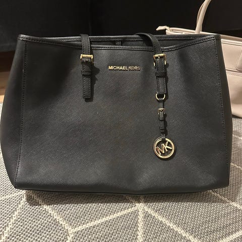 Selger en godt brukt lommebok fra Michael Kors som har ligget i en skuff de siste årene. Den ytterste glidelåsen har blitt litt har så trenger å smøres for p gli enkelt, men det går fint å åpne og lukke slik den er nå. Selges for 50 eller til høysbydende.