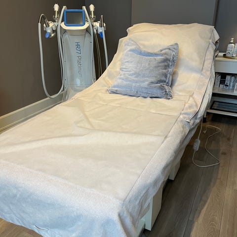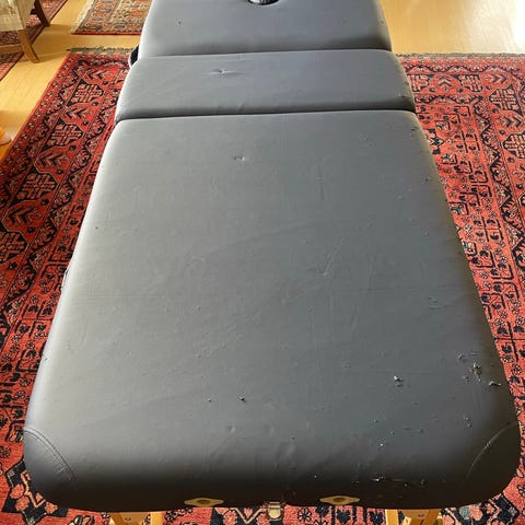 Gonstead knee chest, stol og benk til salgs. Lite brukt og i pen stand. Trekket er i en fin brunaktig farge