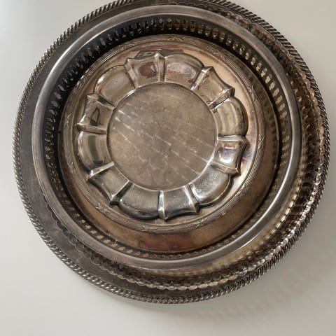 Har over 600 bestikk deler og suvernigskjer som er kjøpt inn med tsnke på hvor godt bevart det er. Ønsker du deg ring av et flott mønster? Siden jeg er utforskende med flere forskjellige teknikker så er jeg veldig billig enda. Priser fra 150-500 for sølvbelagte deler i utsøkt kvalitet og stand. Ta gjerne kontakt. Jeg tilpasser din størrelse