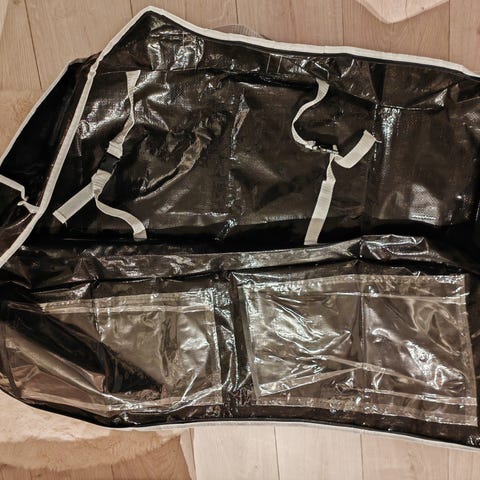 Helt enkel bag for å oppbevare gaveinnpakning i. Mykt stoff. Holder dine gaveartikler samlet og enkelt tilgjengelig med 3 lommer som gir god oversikt. Veldig romslig.