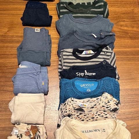Selger disse fine ullplaggene, alle i str 80. Klespakken består av tre sett og en mellomlags-dress med glidelås som er superpraktisk. Spesifisert: