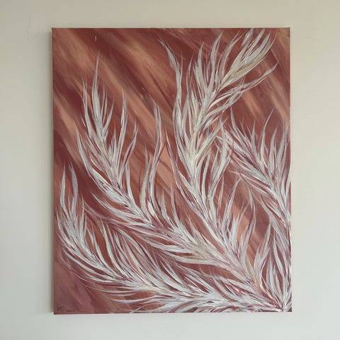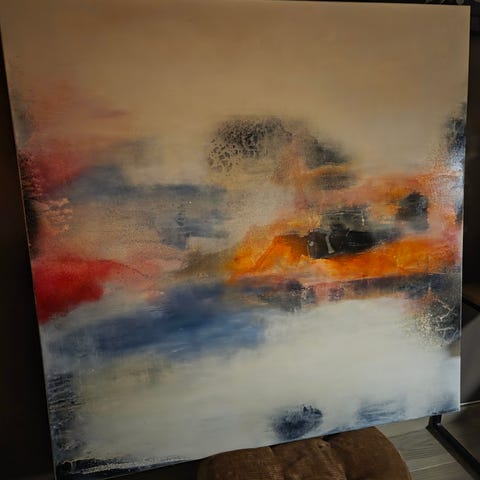 Maleri på lerret, usikker på om det er akryl eller olje. Ukjent kunstner. Uten ramme.