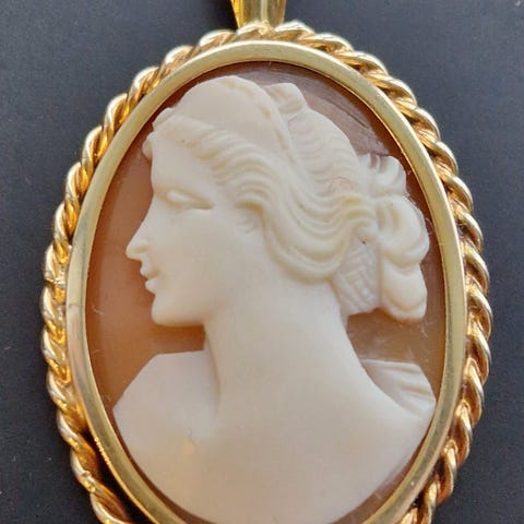 Anheng /Brosje , Camé i Gull 585 ,14 Karat
