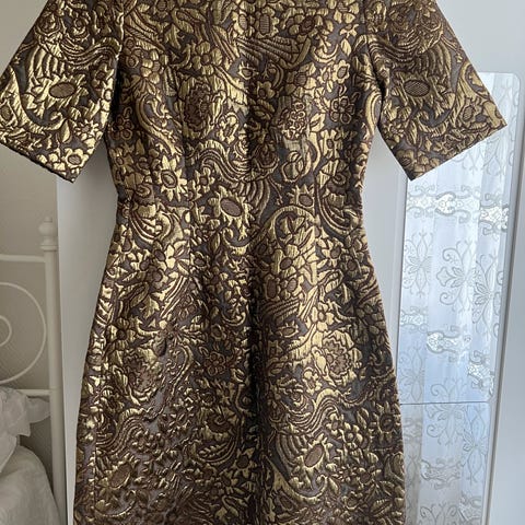Nydelig kjole fra Baum und Pferdgarten str 36. Vakkert stoff med litt mønster, kommer ikke så godt frem i bildet. Brukt to ganger og som ny. Selges da den dessverre er bittelitt liten til meg. Ble anbefalt som toppkjøp i Elle. Like fin sommer som vinter. Mener nypris var 1800kr.