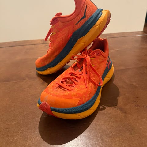 Nike Pegasus Trail løpesko i størrelse 42.5 dessverre til salgs. Skoene er blå med oransje detaljer, designet for løping i terrenget. De har en slitesterk yttersåle med godt grep, egnet for variert terreng.
