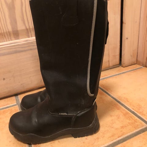 Ride støvler i sort skinn til barn, størrelse 31. Skoene har elastiske sidepaneler for enkel på- og avtaking, samt en lav hæl.