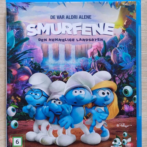 Blu-ray barnefilm. Smurfene. 3 filmer i 1 boks. Norsk tale og tekst. Den Hemmelige Landsbyen. Smurfene. Smurfene 2. 6 år.