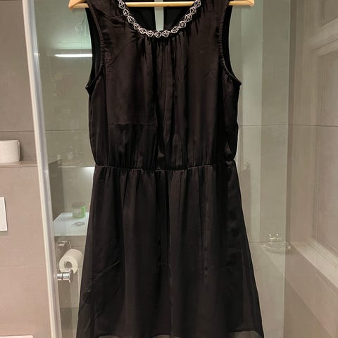 Svart festkjole med høy hals str 38