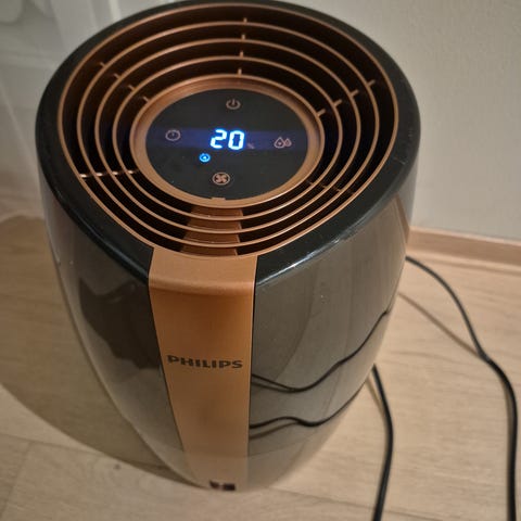 Luftfukter Philips NanoCloud Serie 2000. Den hjelper med å opprettholde en god luftfuktighet, noe som kan være særlig gunstig i tørre måneder eller ved bruk av varme. Med sitt kompakte design passer den enkelt inn i ethvert rom.