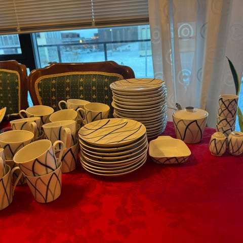 Noen av delene har mindre bruksspor og tidligere limreparasjoner, men helhetsinntrykket er svært pent. Selges samlet.