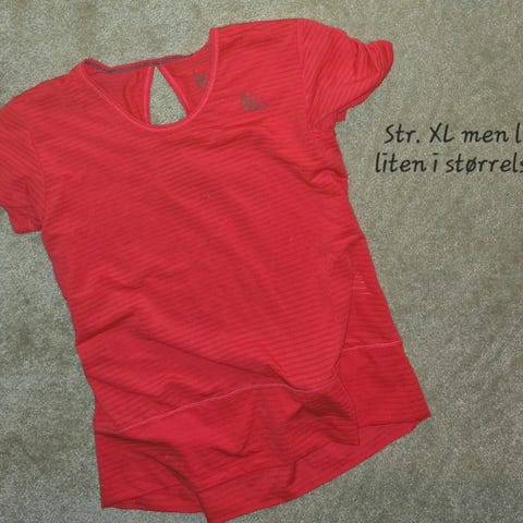 Stilig trenings t-skjorte fra Adidas. Str er xl barn. Vil si ca xs/s dame.