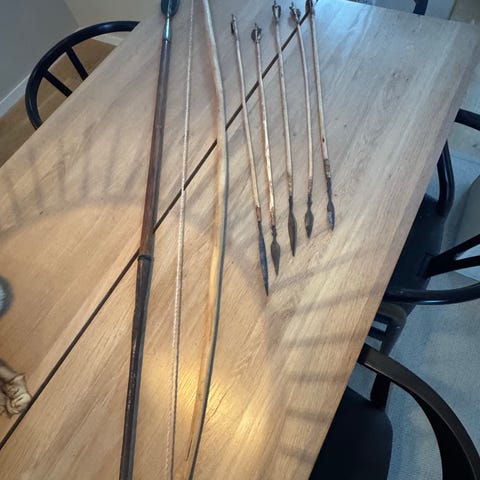 Bue og 2 piler. NB! Dette er et våpen, ikke et leketøy. Ca 20 år gammelt. Må hentes i Trondheim.