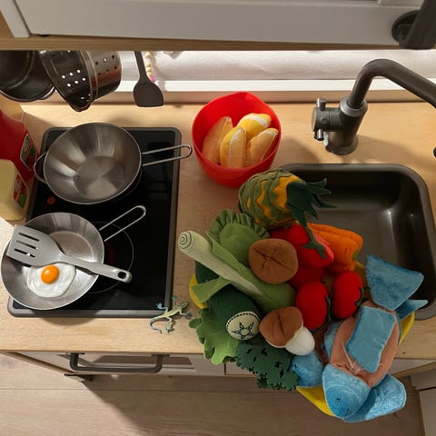 Lekekjøkken fra IKEA med utstyr og lekemat selges. Masse kjekt til barnets kjøkkenkrok🤩