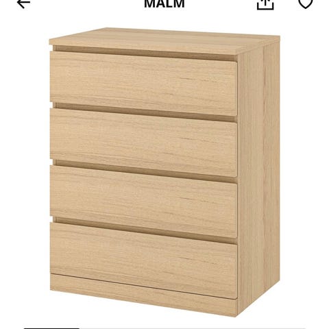 Malm-kommode fra IKEA selges billig da den mangler en list mellom skuffer. Dette har ingenting å si for funksjonen. Tror også det går an å kjøpe nye på IKEA som deler.