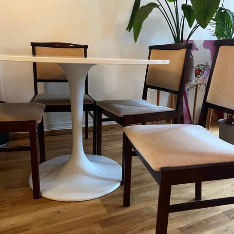 Nb! Har en annen annonse med 4 stoler men med sortmalte ben.