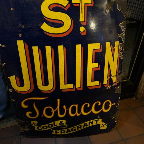 Skiltet fremstår som en senere reproduksjon, men er ikke trykt blikk – dette er ekte emalje. Perfekt som dekor på kjøkken, bar, garasje eller i retro-/vintageinspirert interiør.