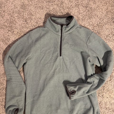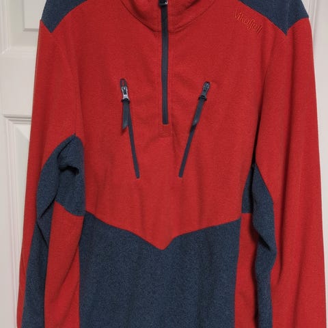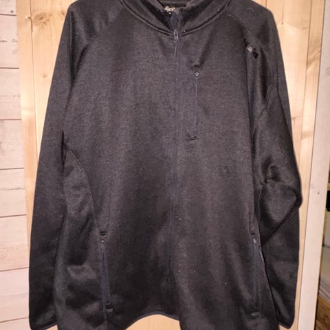 Vikafjell fleecegenser i størrelse XL. Genseren er grå og laget av fleece materiale, egnet for menn.