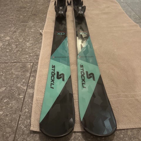 Skiene er lite brukt og fremstår som nye bortsett fra et par merker på oversiden av skiene. Sålen er satt inn med voks slik de har stått lagret den siste tiden. Ubrukt 24/25 sesongen. Aldri slipt. Som nye. Hvis det er merker i sålen er det hairlines i fartsretningen. Ingen betydelige merker.
