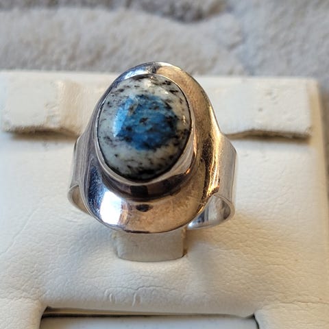 Regulerbar sølvring. Steinen er organisk.