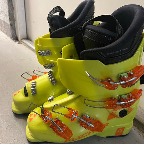 Fischer RC4 130 alpinski støvler i størrelse 245. Støvlene er i svart og gul farge og har flere spenner for justering. Passer for bruk på alpinski.