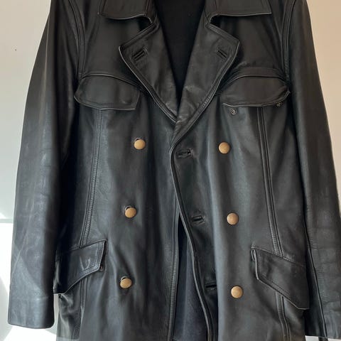 Solid tykk skinn frakk med pels for str medium/ Large kr 650