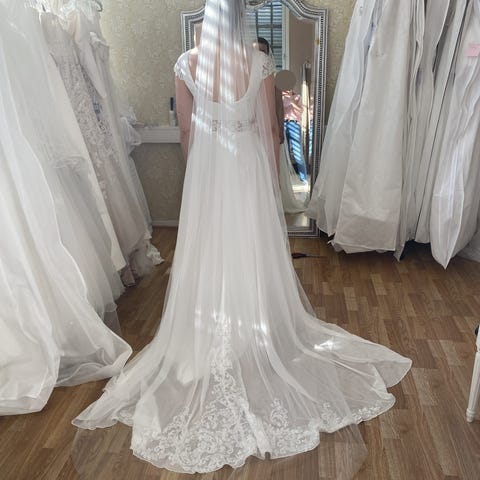 Ubrukt av meg da jeg gikk for et uten blondekant alikevel. Pent brukt, fremstår som rent og helt.