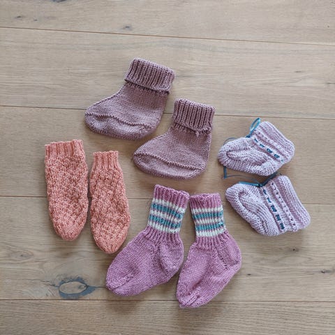 Som ny. Til baby. Hjemmestrikket ca str.0-2 mnd. 50/56. Lys rosa med litt hvitt.