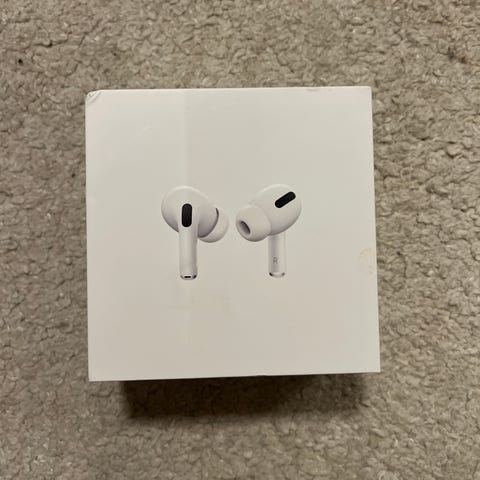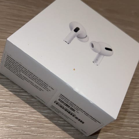 Selger en tom eske/boks til AirPods Pro.