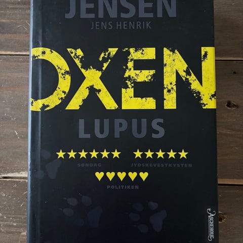Jensen Jens Henrik Oxen Lupus bok. Inneholder krimroman med temaer som offer, ære og bytte. Utgitt av forlaget Politiken.