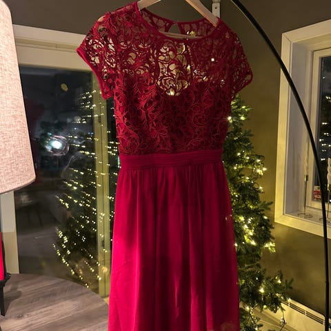 Svart kortermet omslagskjole i str XL fra Ze-Ze. Det er knyting inni så den sitter bedre.