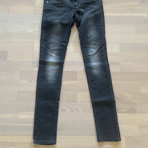 Str er W26 inches og lengde fra skrittet er 33 inches. Stretch jeans.