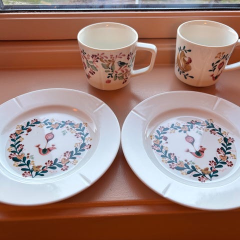 Selger dette helt nye settet med frokost og middagstallerkener (8 av hver). 22 cm og 28 cm. Modellen sense earth. Kan tas i oppvask og Micro (se siste bilde).