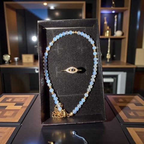 Evil eye ring i S925 og tiger eye krystall armbånd