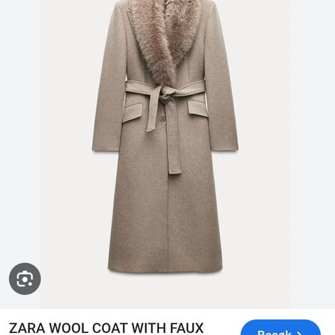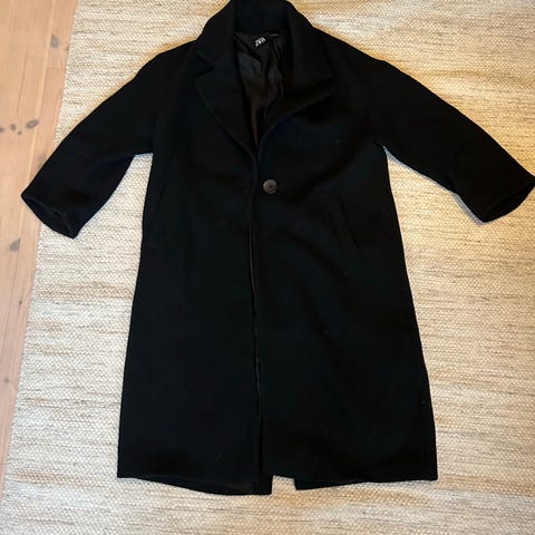 Nydelig ullkåpe fra Zara med fine detaljer. Størrelsen vil passe en small til medium avhengig av passform. Kåpen er uten for og passer best for vår og høst.
