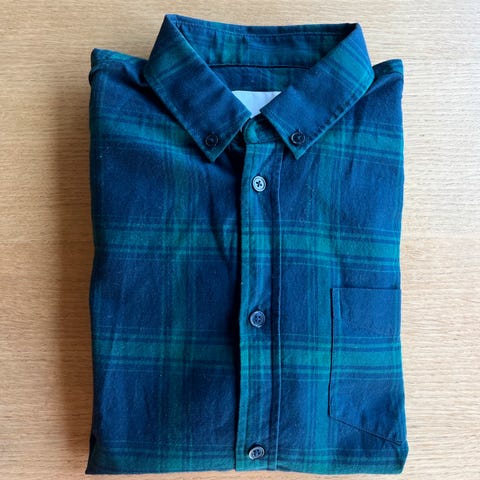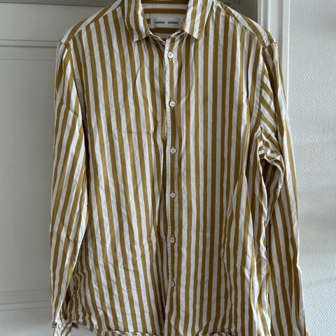Samsøe Samsøe model Liam, skjorte i blå og hvit, størrelse L, laget av bomull. Passer for menn.