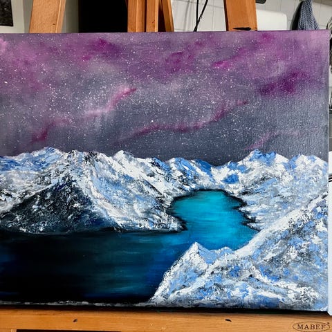 Oljemaleri av flott natur malt på lerret av bomull, 20x30 cm. Lakkert med ferniss for å beskytte mot misfarging