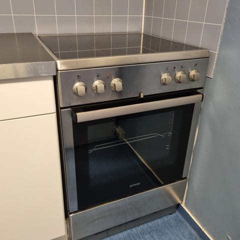 Gis bort pga oppussing. Fungerer som den skal, trenger en vask. Kommer med 3 ovnplater og en rist.