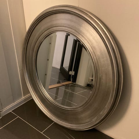 Pent brukt speil uten synlige bruksmerker. Rammen er av aluminium. 65cm