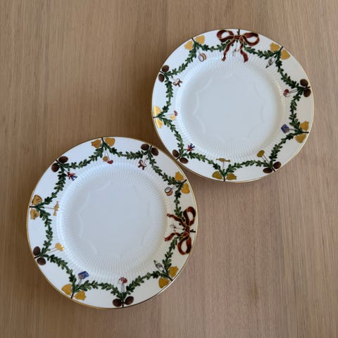 Royal Copenhagen Juleservise "kristtorn" kaffekopper med tilhørende skåler og tallerken. Merke Luciano.