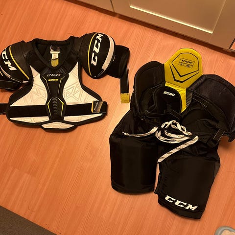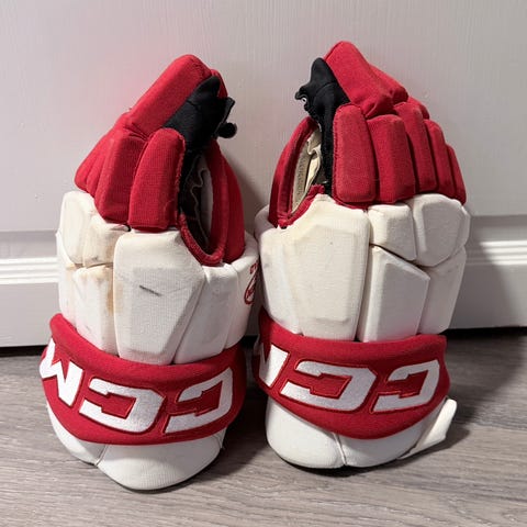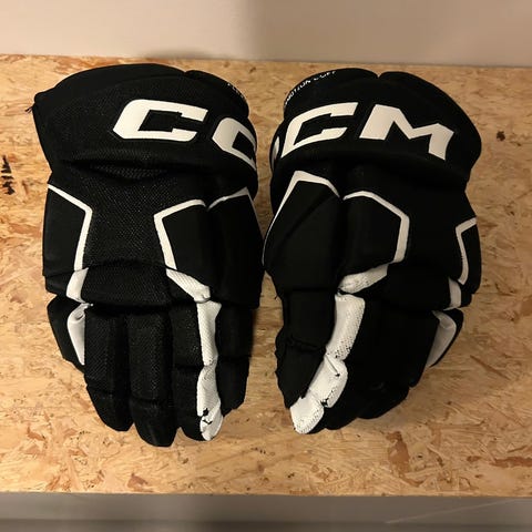 CCM JR Medium ishockeyhanske i svart og gult. Hansken er designet for juniorspillere og egner seg til ishockey.