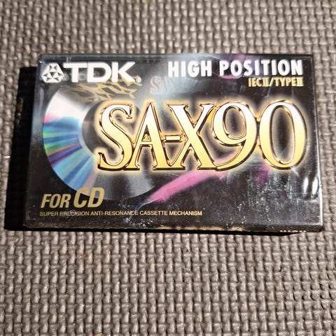 TDK SAX 90 1979. Forseglingen har gått litt i oppløsning på denne så selger billig. Den har ikke vert ute av forseglingen.