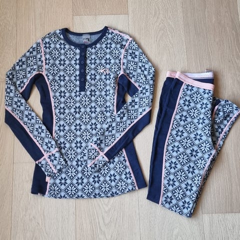 Kari Traa rose ullsett for dame i størrelse S, laget av merinoull. Fargen er grå.