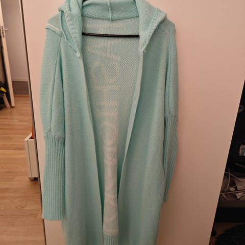 Selger denne nydelige cardiganen da den desverre ikke blir brukt. Den er i størrelse S men kan også passe M, spørs hvordan du liker den. Cardiganen er laget av merinoull og alpakkaull og er utrolig myk.